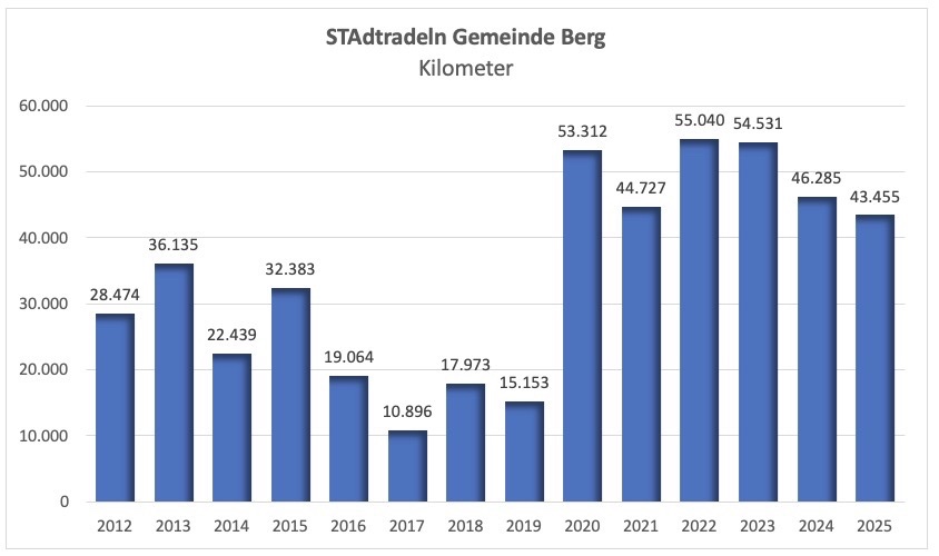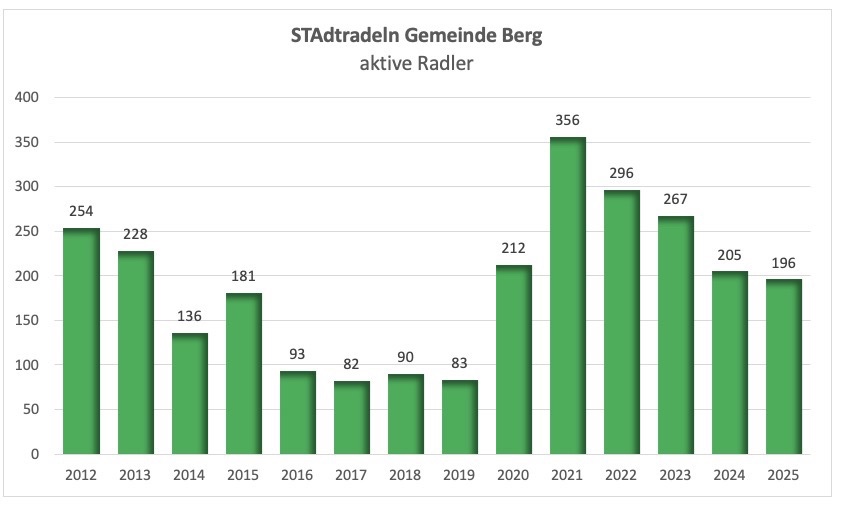 Entwicklung des Stadtradelns in der Gemeinde Berg über die Jahre