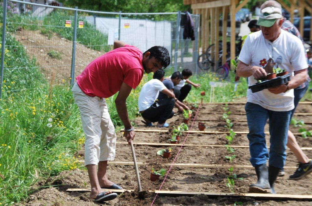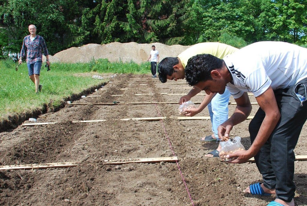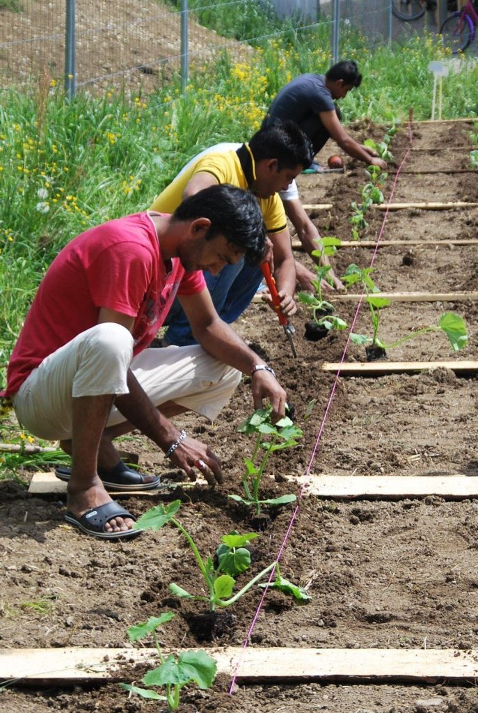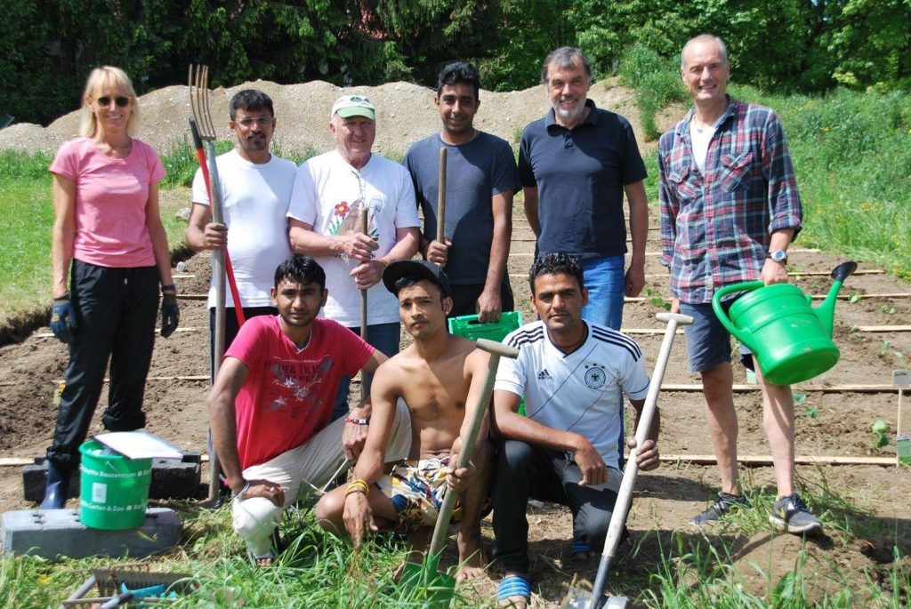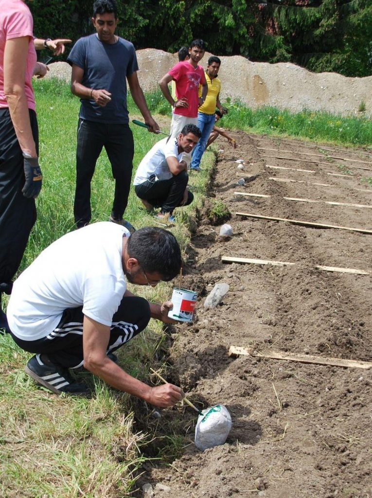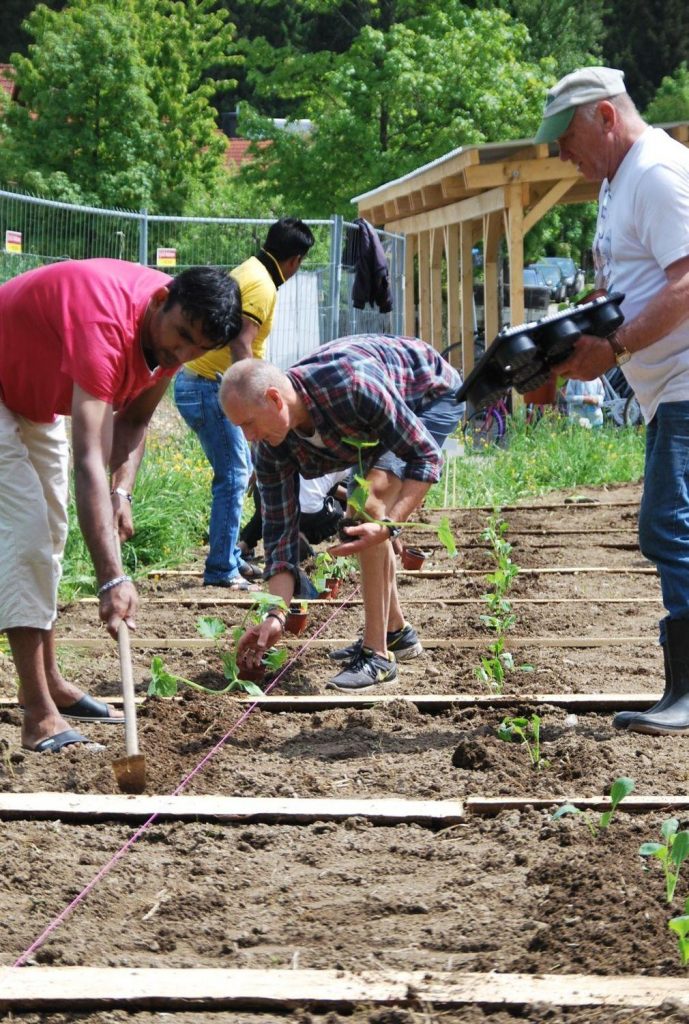 Am Samstag Vormittag fanden sich nach und nach sieben unserer pakistanischen Gäste ein, die mit Peter und Renate Born und unter der fachmännischen Anleitung von Ralf Maier (Obst- und Gartenbauverein) mit der Aussaat begannen und die ersten Pflanzen setzten. Die Setzlinge stellten die Fam. Mair und der Obst- und Gartenbauverein zur Verfügung.