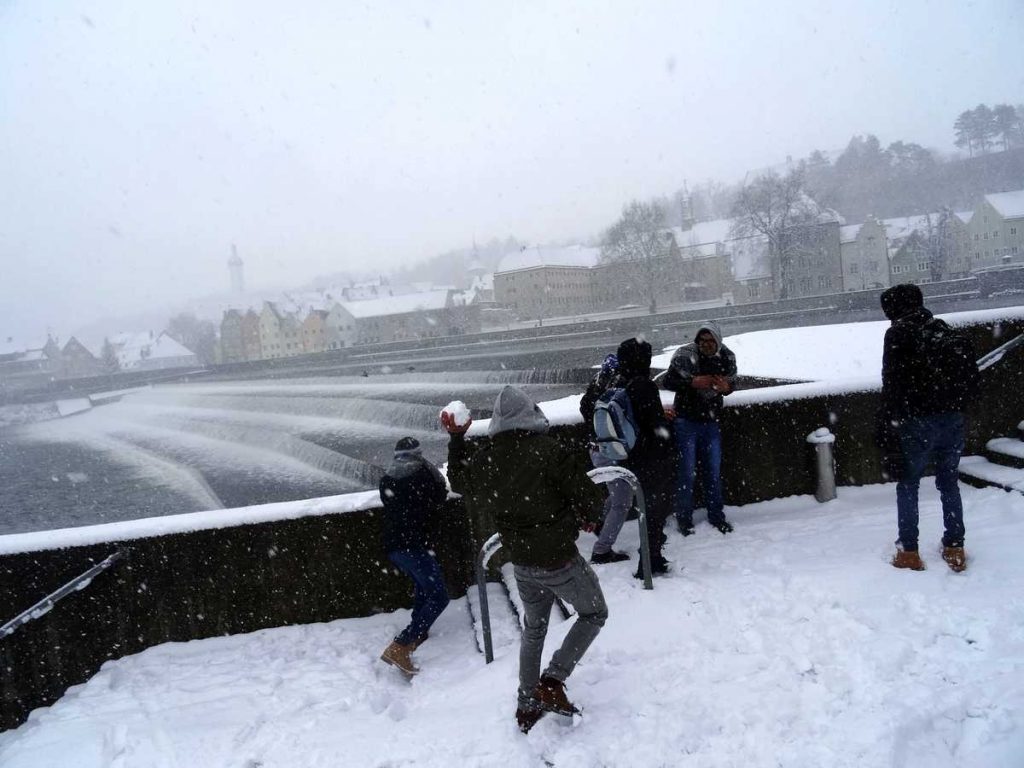 Von Landsberg aus kämpften wir uns durch den Schnee bis zur „Hexenküche“ vor. Wir, das waren sechs pakistanische Gäste mit Ingrid Tokar, Feli und Peter Morgenroth. Es wurde ein perfekter Wintertag mit lockerem Pulverschnee, mit endlosen Schneeballschlachten und Fotoshooting. Unbeschwerte Stunden.