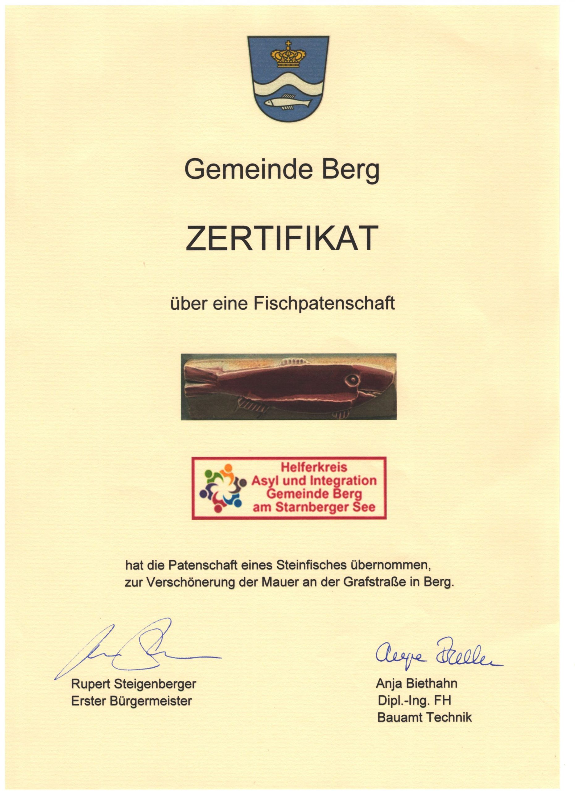 Der Helferkreis hat die Patenschaft für einen Keramikfisch an der Betonmauer an der Grafstraße in Berg übernommen.