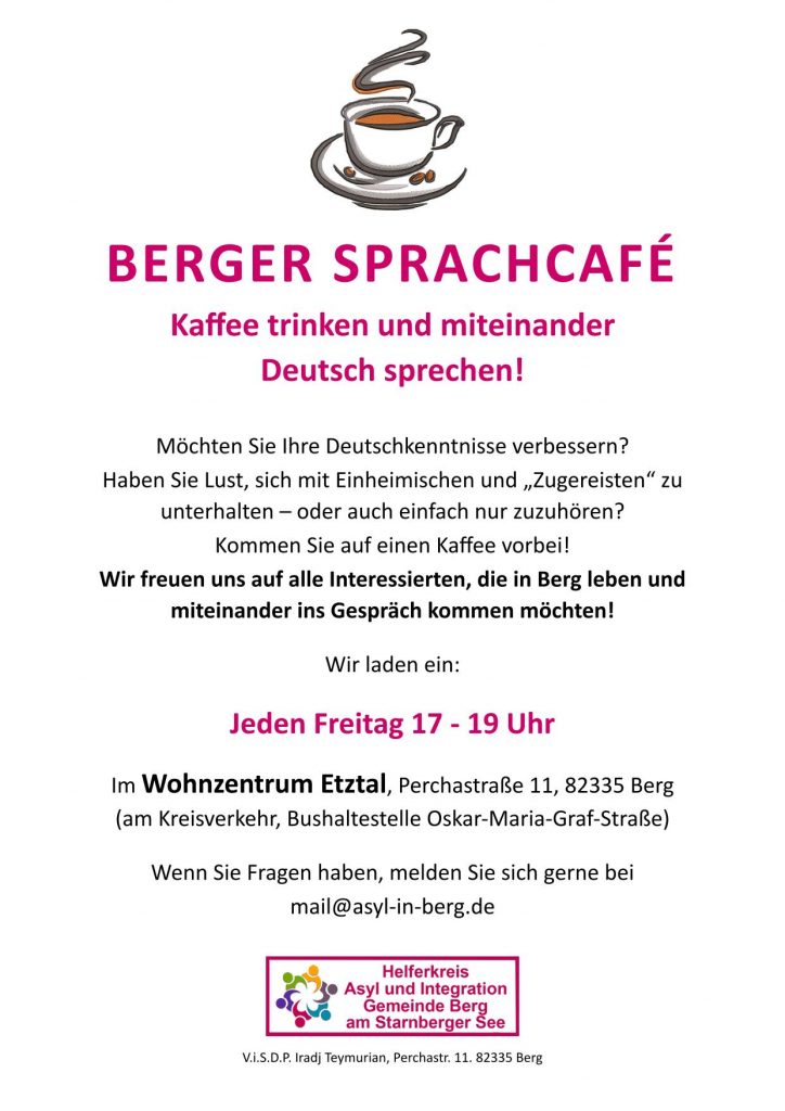 Impressionen vom SprachcaféSusanne Polewsky14. November 2025Helferkreis Asyl und Integration Das Ergebnis eines schönen gemeinsamen Nachmittags Das wöchentliche Sprachcafé Jeden zweiten Freitag am Nachmittag treffen sich Interessierte zum Miteinander sprechen und Kaffeetrinken. Weitere Teilnehmer/innen sind jederzeit herzlich eingeladen. zum Helferkreis Asyl und Integration Susanne Polewsky Artikel: 7