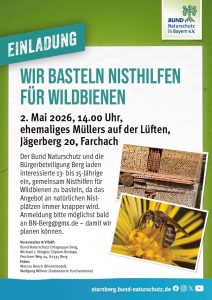Wir setzen gemeinsam ein Zeichen! Der Bund Naturschutz lädt in Zusammenarbeit mit der Bürgerbeteiligung Berg interessierte 13- bis 15-Jährige ein, aktiv zu werden. Wir bauen Nisthilfen, um die Wohnungsnot unserer kleinen Helfer zu lindern.